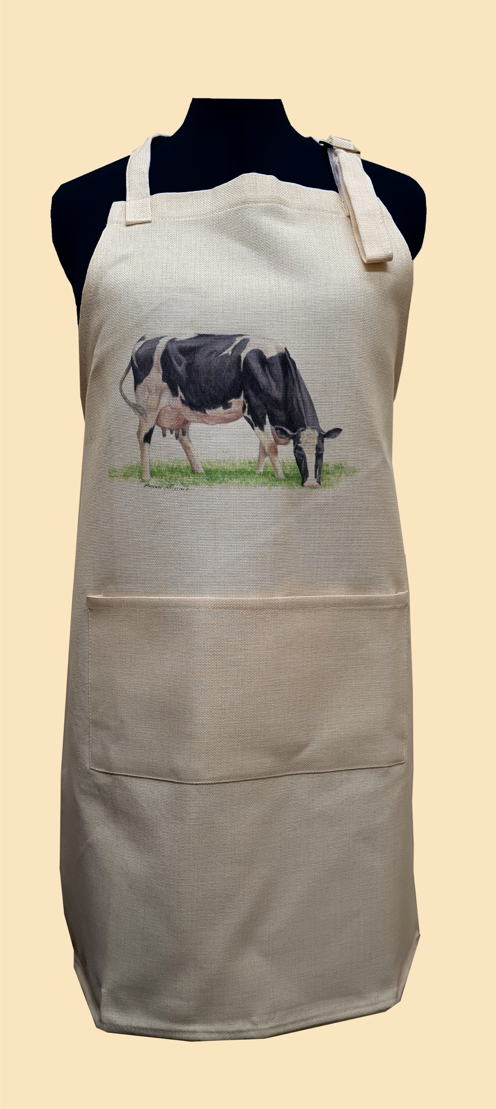 The Friesian Cow Apron is simple in design yet makes a delightful addition to the home for country folk and animal lovers.